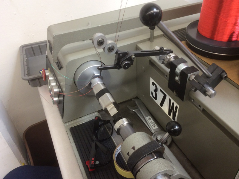 IMG_1359 Published August 27, 2014 at 800 × 598 in IMG_1359 ← Previous Next → Special dies are made in house to hold bobins on winders